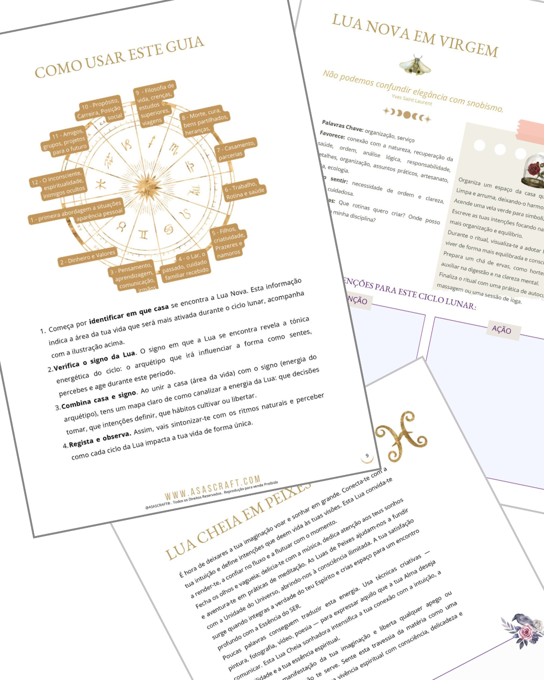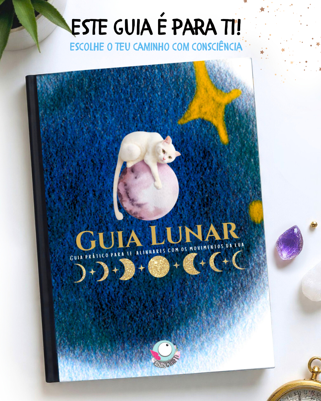 Cada página foi pensada para te acompanhar ao longo da vida, sendo um guia atemporal, sustentável e feito para seres tu a explorar, imprimir e reutilizar sempre que quiseres alinhar-te com a Lua e contigo mesma.